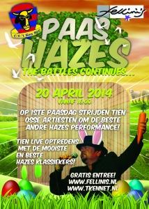 Eerste Paasdag: het grote feest van het eieren zoeken, paasbrunches en natuurlijk Paashazes! Na een succesvolle eerste editie vorig jaar, met als grote winnaar Stijn Kling, is het tijd voor een rematch. Twaalf deelnemers doen aanstaande zondag, 20 april, hun stinkende best om zo goed mogelijk een André Hazes performance neer te zetten om naar huis te mogen gaan met de bokaal met de grote Hazesoren. Dus heb je zin in een pilsje, en wie heeft dat nou niet op eerste Paasdag, kom dan vanaf 16.00 uur naar Fellini’s, de entree is gratis.